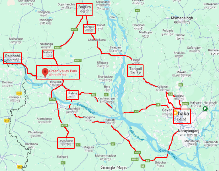 Green Valley Park Ltd. is well connected to major districts and divisions in Bangladesh.